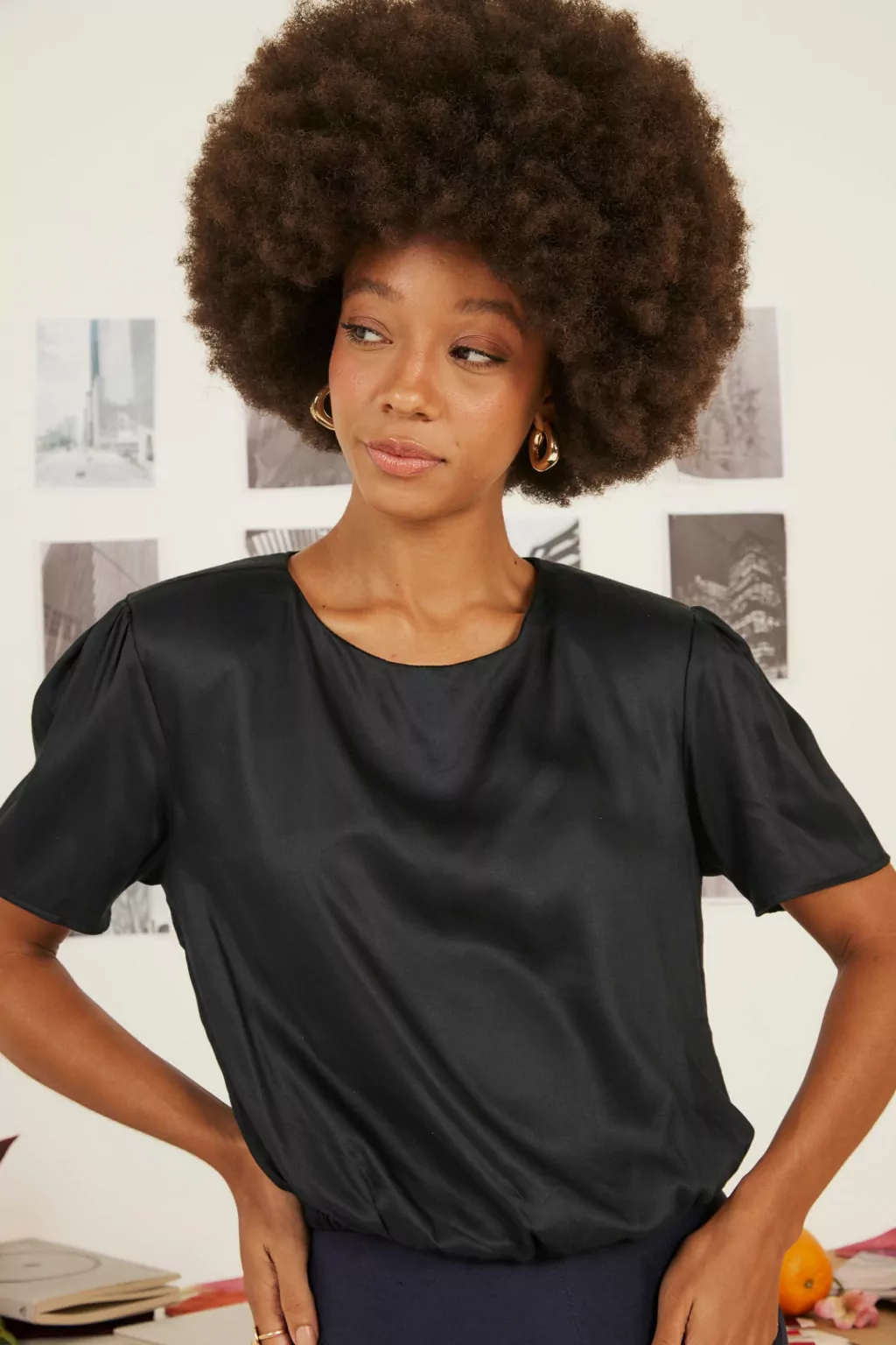 A Blusa Contorno é a peça perfeita para quem busca um visual moderno e sofisticado. Com mangas longas, ela traz um efeito balonê na barra, criado pelo elástico, que dá um toque de volume e estilo. As mangas são franzidas, e a presença das ombreiras adiciona um detalhe estruturado, conferindo à blusa um charme único. Seu design arrojado combina perfeitamente com peças mais básicas ou até mesmo com calças de alfaiataria para um look equilibrado. Versátil, a Blusa Contorno é ideal para eventos formais ou para compor um estilo mais despojado, garantindo sofisticação e personalidade.