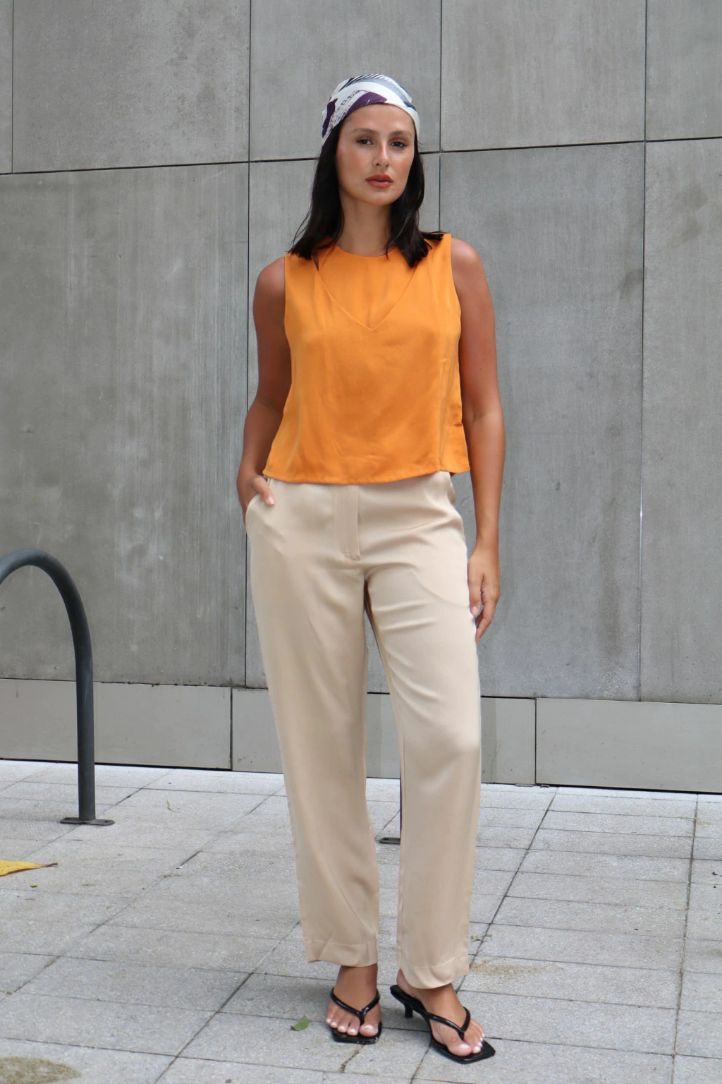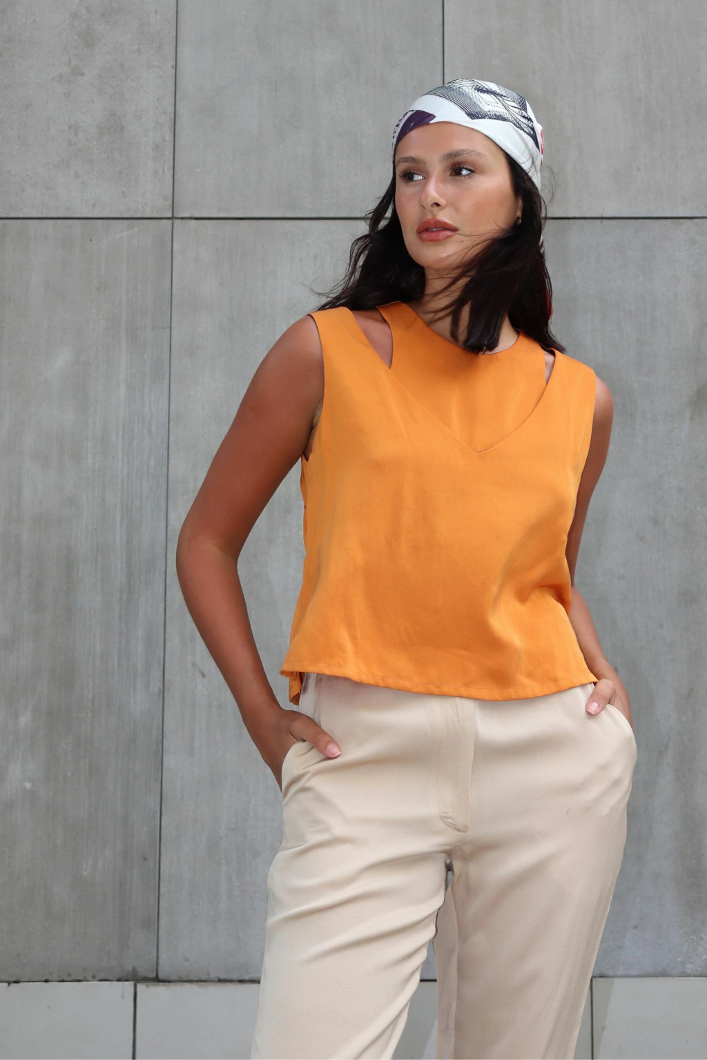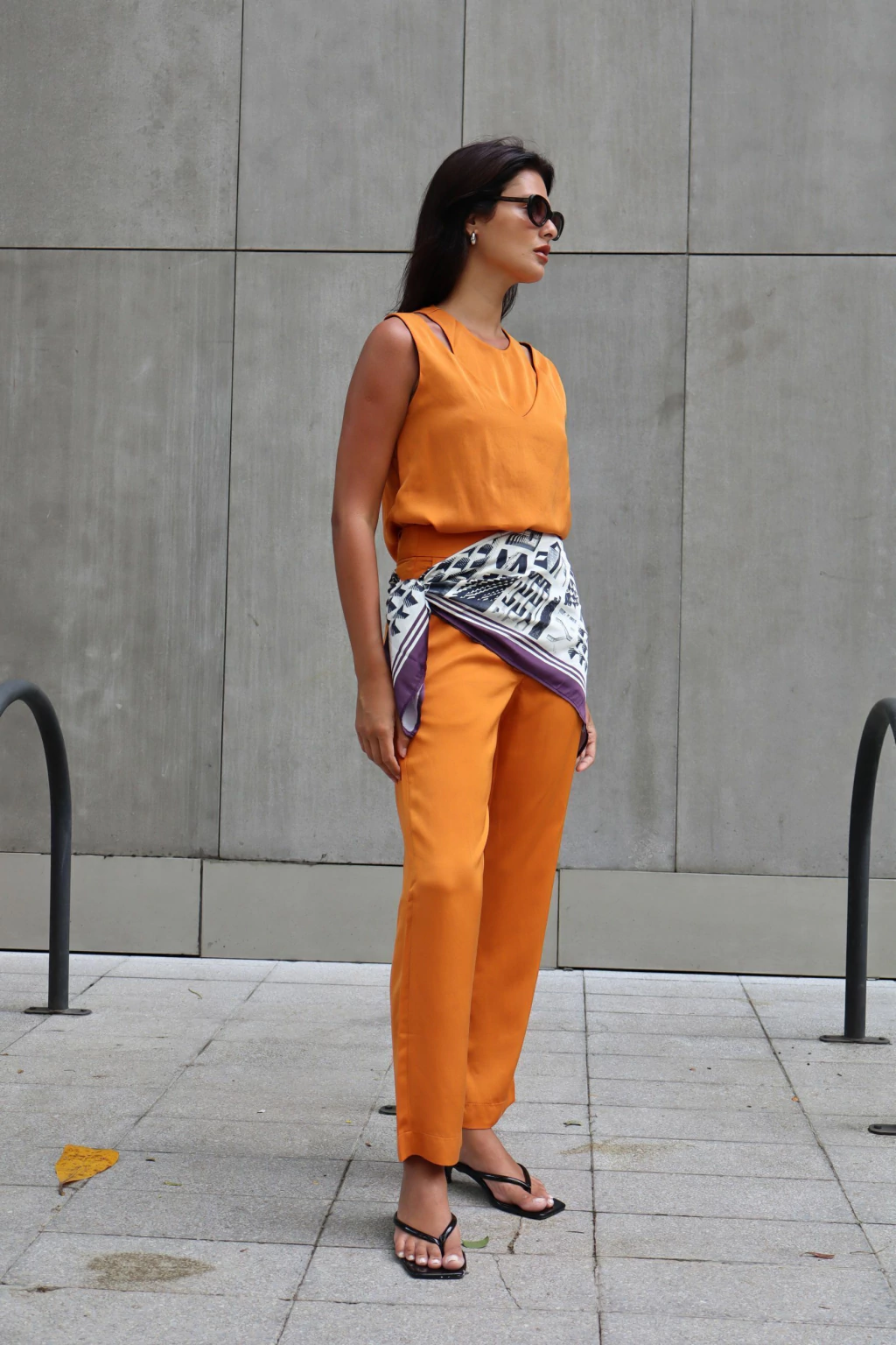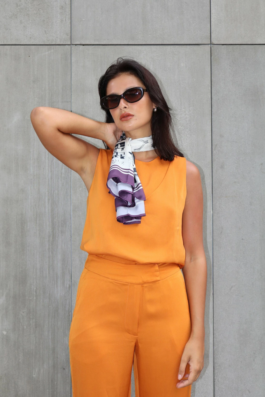 Esta peça é confeccionada com a Viscose Duo, um tecido premium 100% viscose, desenvolvido para unir sofisticação e conforto. Com um lado creponado e outro acetinado, o material oferece um toque macio e agradável à pele, além de um caimento impecável. Neste modelo, utilizamos o lado acetinado. A viscose é um tecido respirável, perfeito para os dias mais quentes. Sua gramatura é considerada alta para um tecido de viscose, o que garante uma estrutura diferenciada e maior durabilidade. Para preservar sua beleza, recomendamos lavar separadamente à mão, evitar deixar de molho e seguir todos os cuidados indicados.