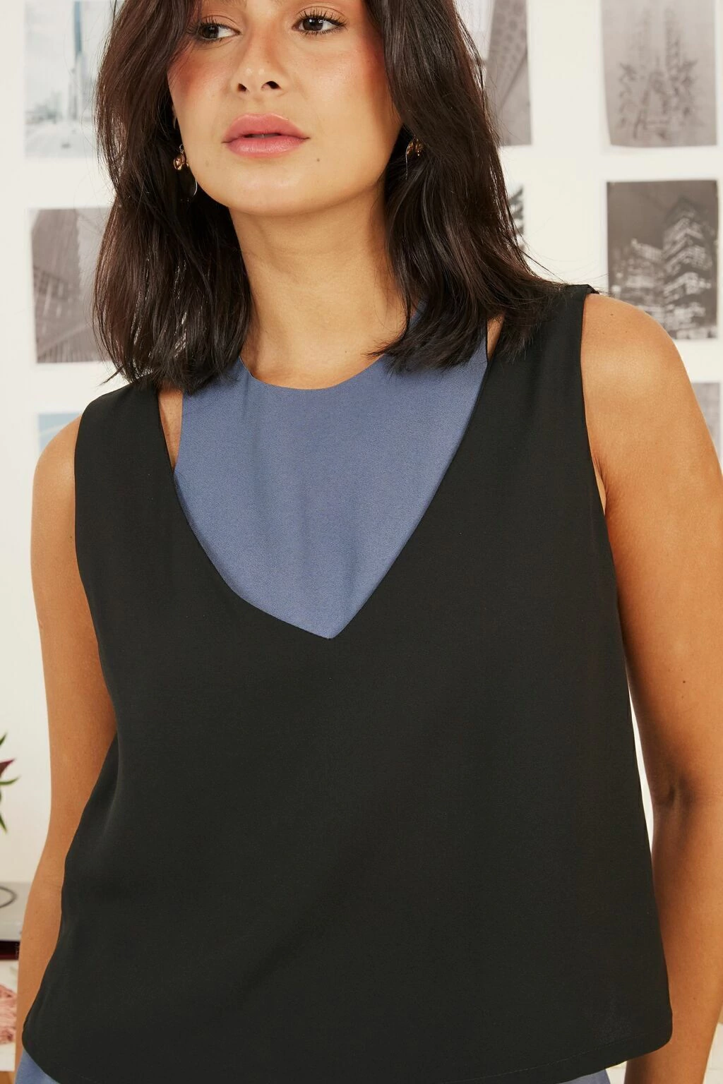 A Blusa Díptica é uma peça inovadora e cheia de estilo, ideal para quem busca um visual diferenciado. Sua modelagem cria a ilusão de duas blusas sobrepostas na parte da frente, sendo a de baixo com decote tipo nadador e a de cima com decote em V. Esse design moderno traz um toque sofisticado e ao mesmo tempo descomplicado. O fechamento com botão na parte de trás adiciona um detalhe discreto e elegante. Perfeita para quem adora um visual criativo e ousado, a Blusa Díptica é uma excelente escolha para diversas ocasiões.